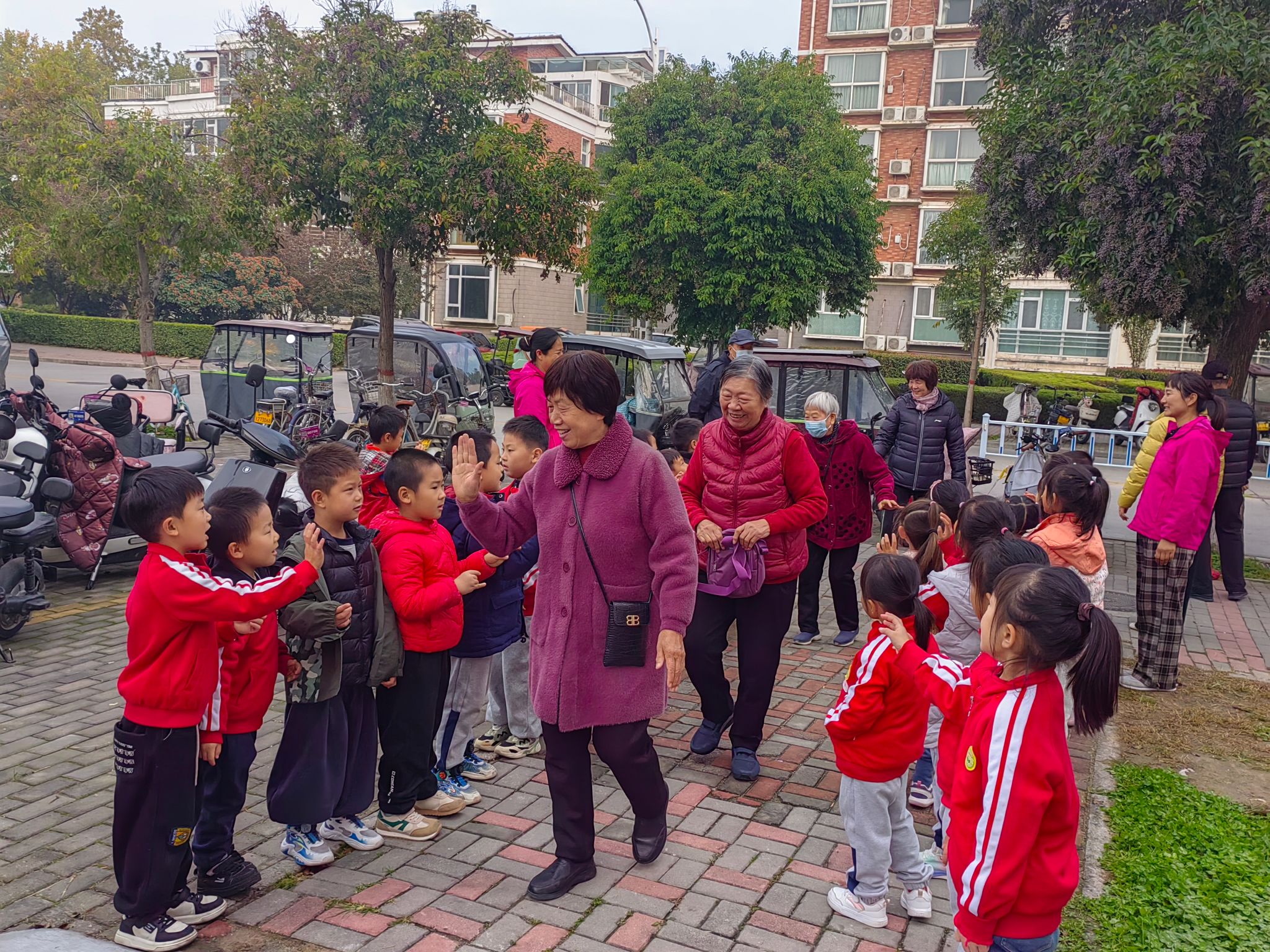 运动会开幕式上,由退休教职工自编自导的舞蹈《欢聚一堂》和《红太阳照边疆》率先登场,老同志们身着色彩艳丽的演出服,伴随着欢快的旋律翩翩起舞,优美的动作、饱满的热情,瞬间点燃了现场气氛,赢得了观众的阵阵掌声。紧接着,前来助阵的幼儿园小朋友和子弟学校同学们表演了舞蹈《百善孝为先》和歌曲《共产主义儿童团团歌》,他们用欢快的舞蹈、嘹亮的歌声为爷爷奶奶们送上重阳节的祝福。